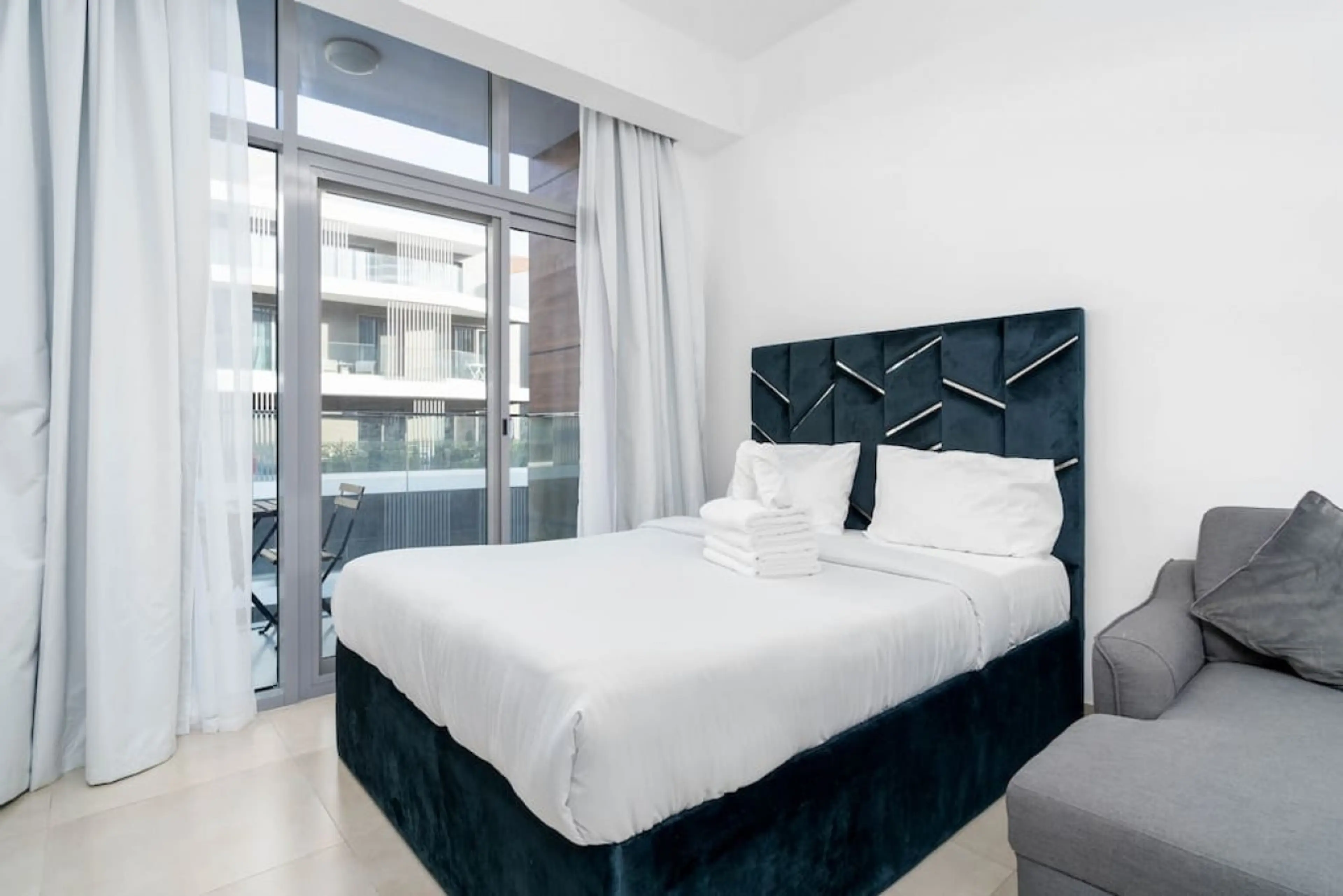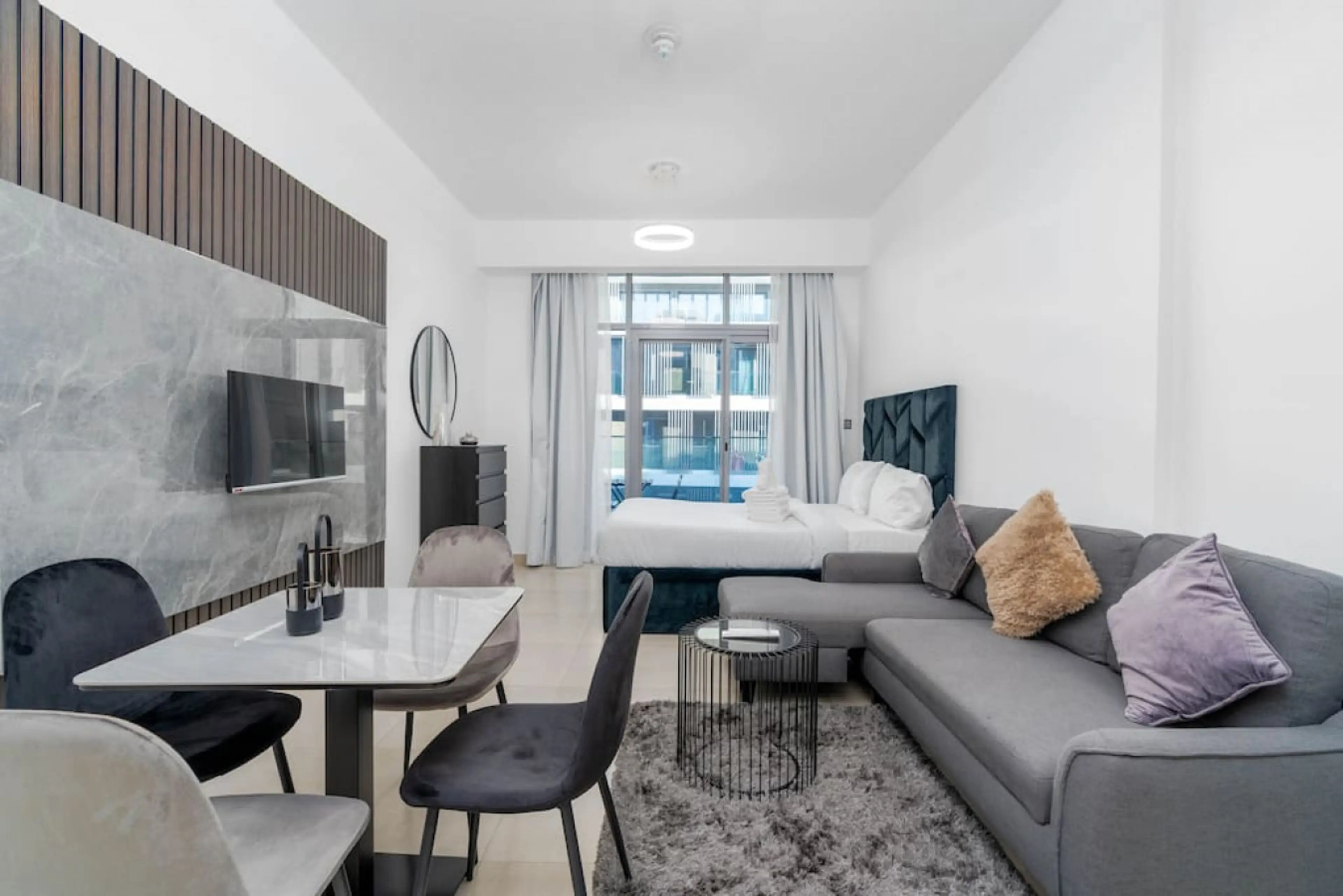 This studio apartment located in the heart of Jumeirah Village Circle. It is a very spacious and comfortable apartment, offering you all the amenities you need for your stay. The apartment has a fully equipped kitchen, bathroom with shower and towels, sofa bed (can be used as an extra bed), dining...